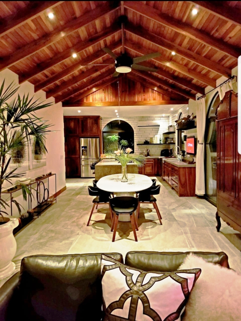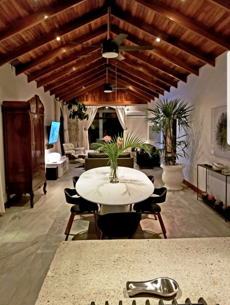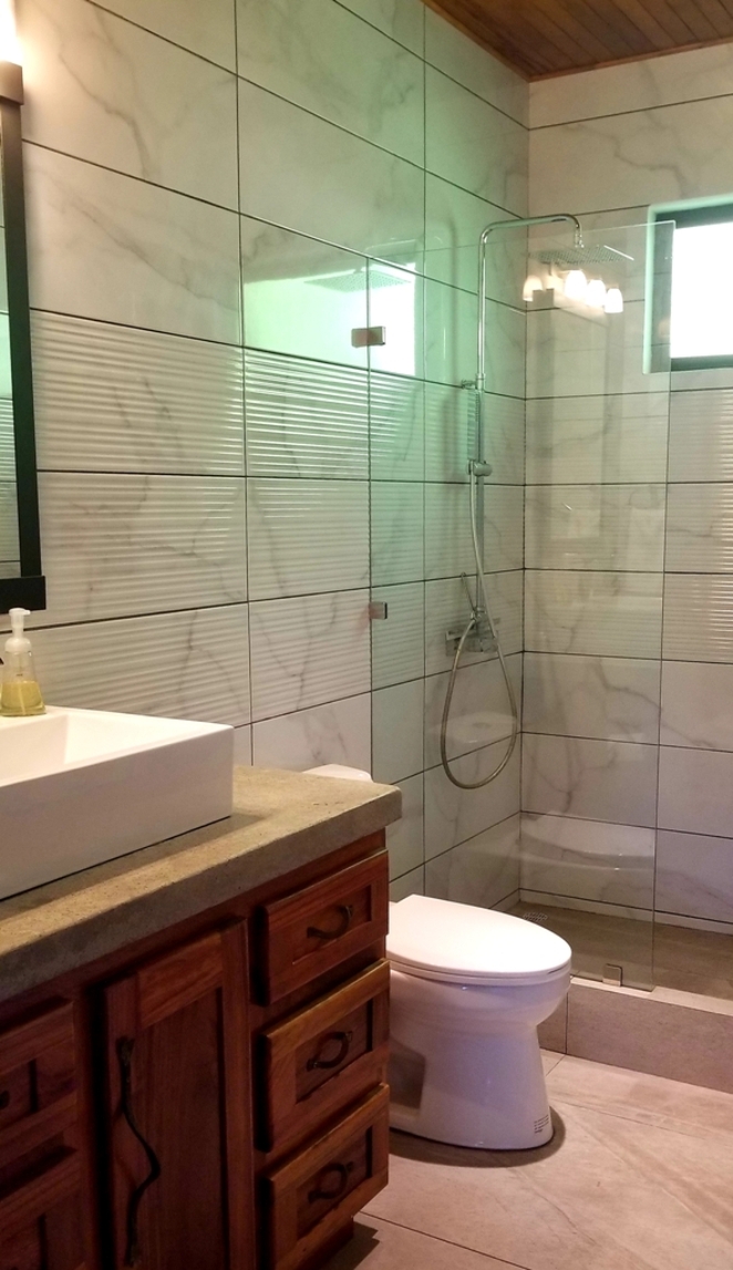 Diese Designer-Villa mit 3 Schlafzimmern und 2 Bädern, nur 10 Minuten vom Arenalsee entfernt, verfügt über eine umlaufende Veranda und raumhohe Fensterschiebetüren mit einem wunderschönen Blick auf den Dschungel und den Vulkan Arenal.