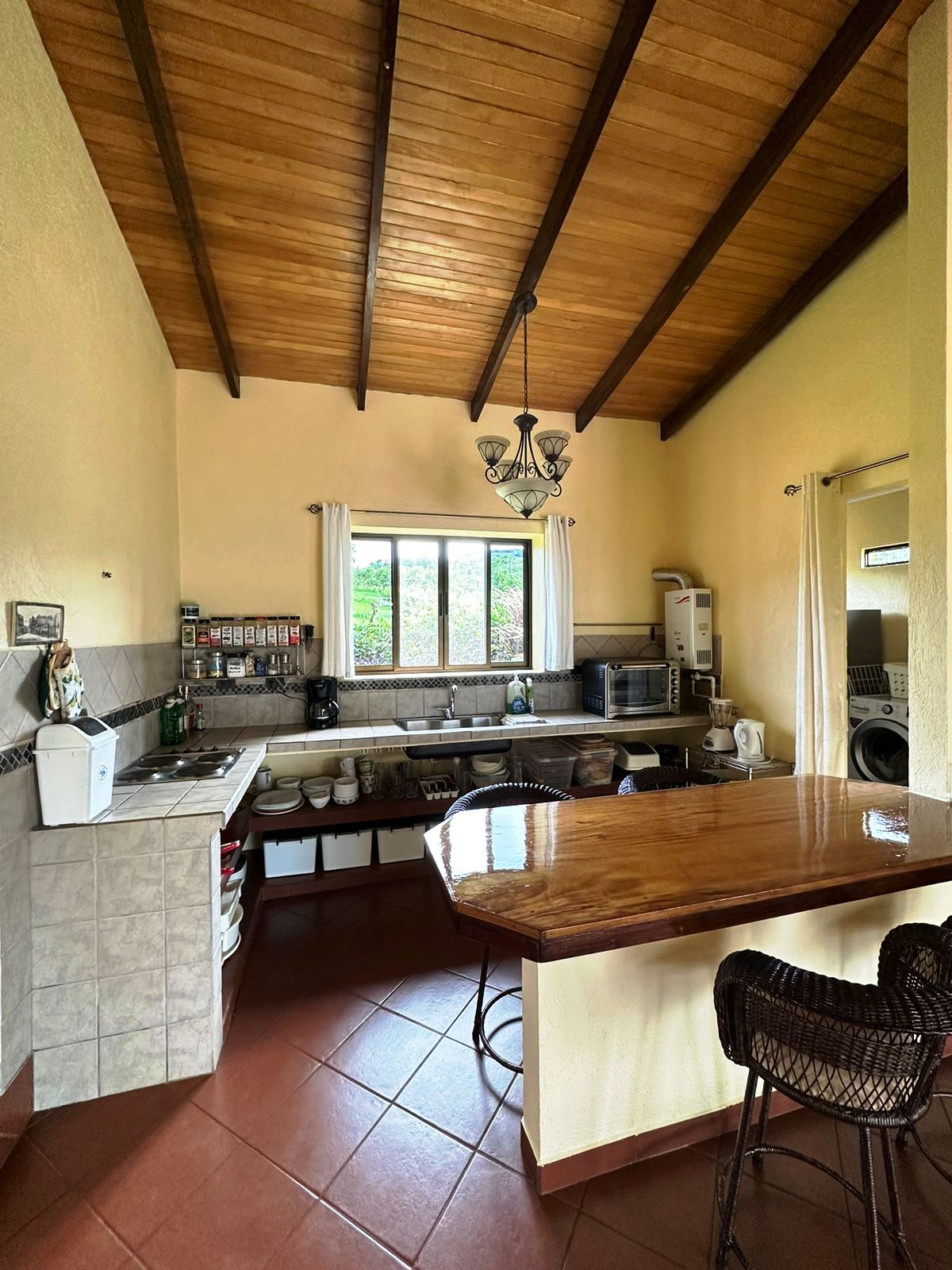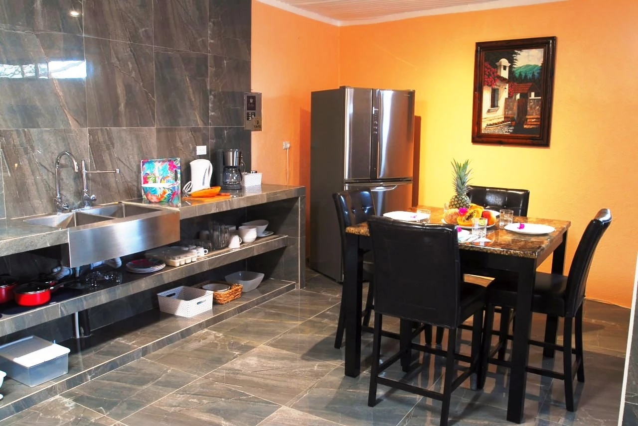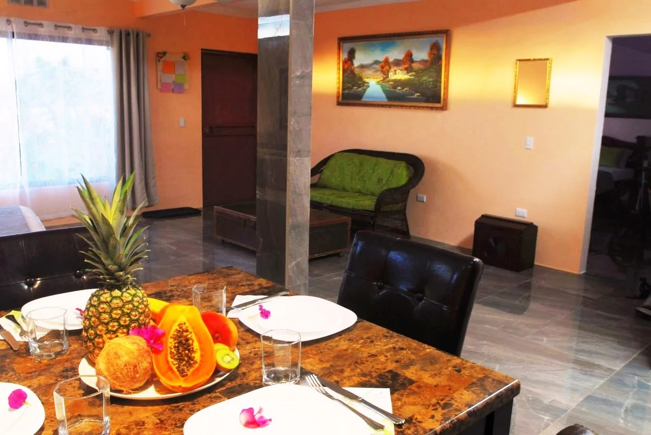 Die Gästewohnung mit ca. 100 m² liegt vom Haupthaus getrennt im UG und hat einen Ausgang zum Garten, voll ausgestattet mit Küche, Wohnzimmer, Schlafzimmer und Badezimmer. Mit der Vermietung dieser Wohnung kann man gute Einnahmen als B & B realisieren und sich das Leben in Costa Rica finanzieren.